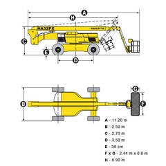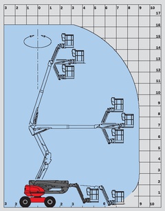 Рабочая высота коленчатых подъемников достигает 43 метров. При этом важным преимуществом этого класса является возможность работы при затрудненном доступе к объекту. Благодаря конструкции рабочей стрелы подъемник не обязательно устанавливать вплотную к объекту.